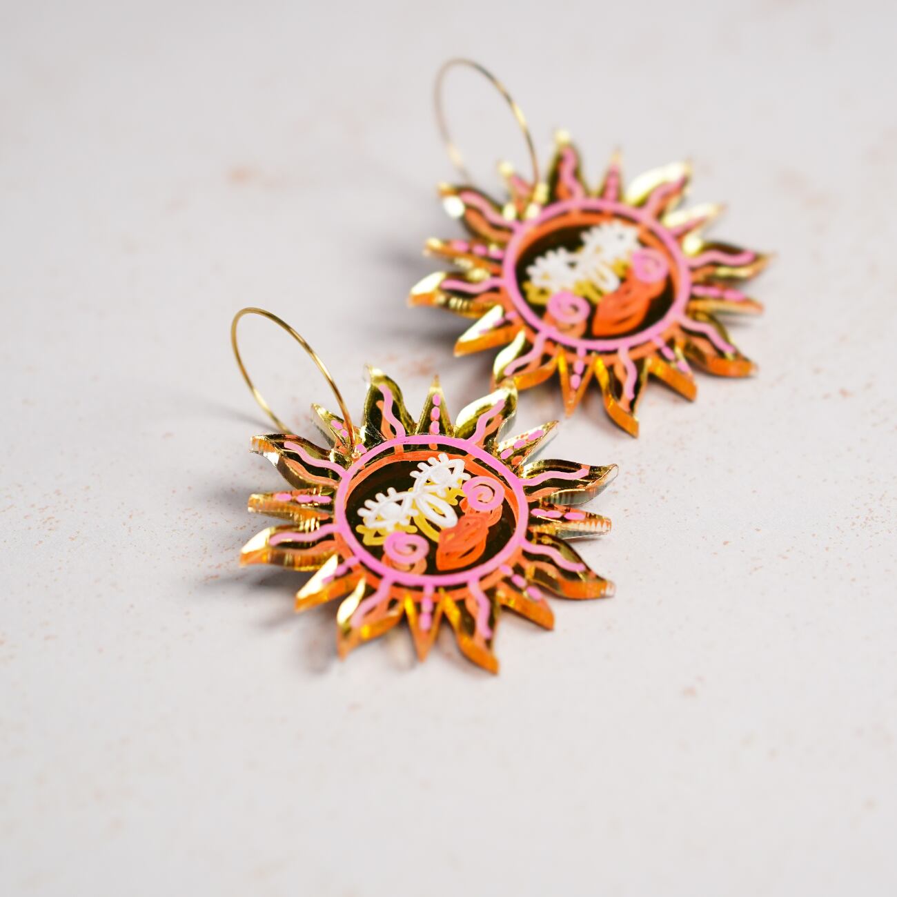 ☀️太陽モチーフのゴールドピアス|光をまとうアクリルアクセサリー